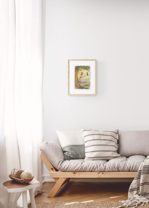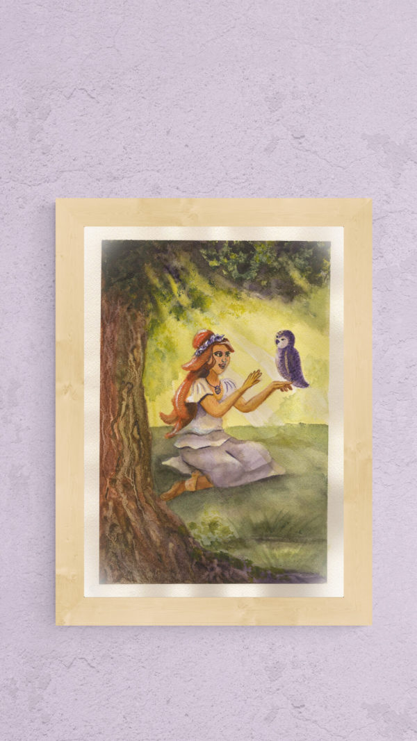 La nymphe et la chouette – tirage imprimé aquarelle FineArt